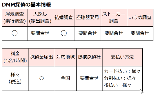 DMM探偵 | 〇 | 要問合せ | 〇 |